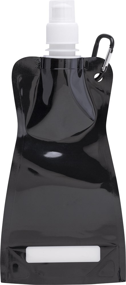 Opvouwbare transparant PP 'waterfles' (420 ml), met karabijnhaak. Wit (02) en zilver (32) zijn niet transparant.