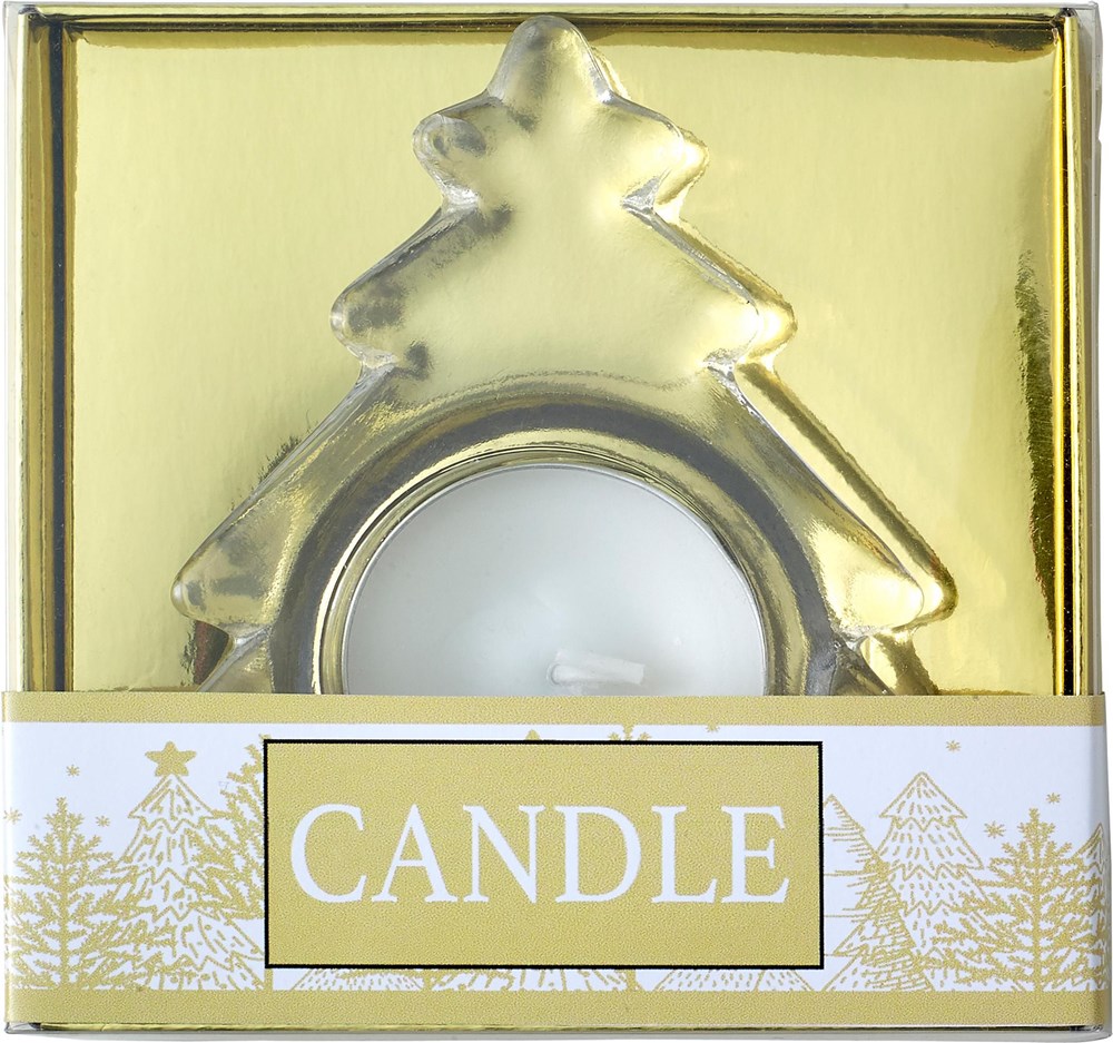Glazen waxinelichthouder in de vorm van een dennenboom, inclusief waxinelichtje. Geleverd in cadeauverpakking.