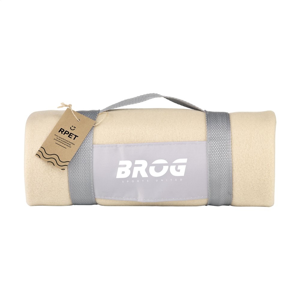 Fleeceplaid van 30% polyester en 70% RPET polyester (180 g/m²). RPET polyester is een materiaal gemaakt van gerecyclede PET-flessen en gerecyclede textielvezels. Met handige draaglus. Afm. uitgevouwen 150 x 120 cm.