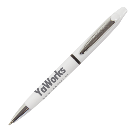 GOZO kunststof balpen Peekay in het wit met metallic clip en puntstuk en blauw schrijvende...meer