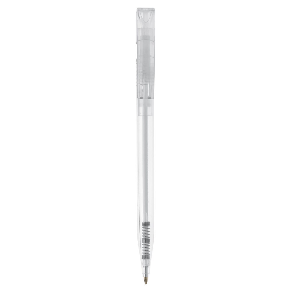 Toppoint design balpen, geproduceerd in Duitsland. Deze pen bevat een X20 vulling voor 2,5km schrijfplezier. Transparante pen met blauwschrijvende vulling.