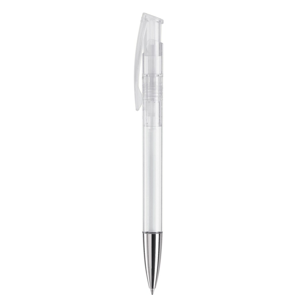 Toppoint design balpen, geproduceerd in Duitsland. Deze pen bevat een blauwschrijvende Jumbo vulling voor 4,5km schrijfplezier. Transparante pen met een metalen tip.