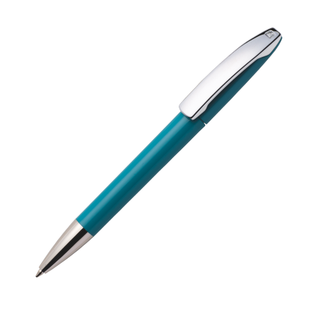 Maxema balpen VIEW V1 C CR, draaibalpen met glanzend gekleurde houder, verchroomde metalen clip, verchroomd puntstuk. Voorzien van Jumbo vulling met blauwe Dokumental inkt voor tot 2.500 meter schrijfplezier. Boven- en onderstuk zijn leverbaar in maar liefst 19 kleuren en zijn vanaf 2.000 stuks onderling qua kleur te combineren.