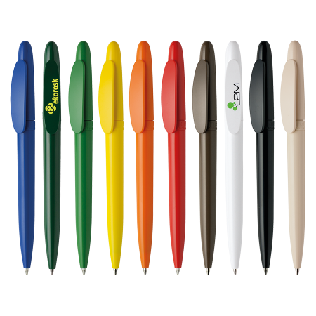 Maxema balpen ICON GREEN IG2 C draaibalpen gemaakt van anti-bacterieel plastic met glanzend gekleurde houder en clip. Voorzien van Jumbo vulling met blauwe Dokumental inkt voor tot 2.500 meter schrijfplezier. Boven- en onderstuk zijn leverbaar in 10 kleuren en zijn vanaf 2.000 stuks onderling qua kleur te combineren.