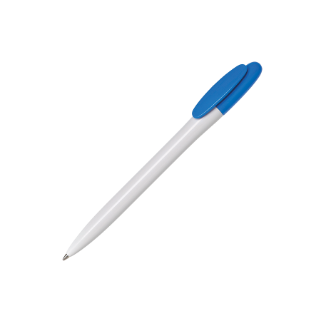Maxema balpen BAY B500 BC, draaibalpen met glanzend witte houder en glanzend gekleurd bovenstuk. Voorzien van X-20 vulling met blauwe Dokumental inkt voor tot 2.000 meter schrijfplezier. Leverbaar in maar liefst 8 kleuren welke vanaf 2.000 stuks onderling qua kleur gecombineerd kunnen worden.
