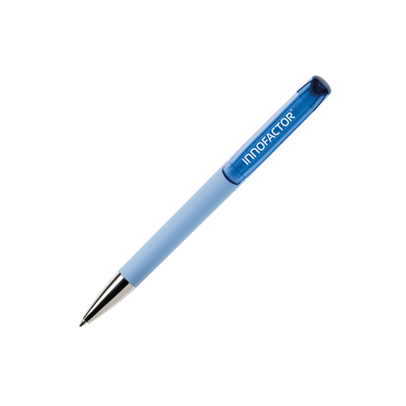 Maxema balpen FLOW F1 GOM 30 CR, draaibalpen met gekleurde houder voorzien van rubber coating, glanzende gekleurde transparante clip, mat gekleurd kunststof bovenstuk met opvallend motief, verchroomd puntstuk. Voorzien van Jumbo vulling met blauwe Dokumental inkt voor tot 2.500 meter schrijfplezier. Houder, bovenstuk en clip zijn leverbaar in maar liefst 18 kleuren welke vanaf 2.000 stuks onderling qua kleur gecombineerd kunnen worden.