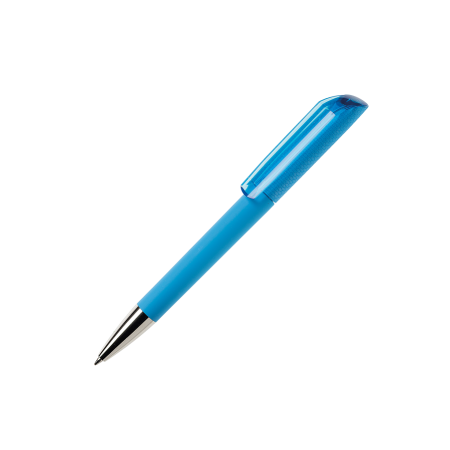 Maxema balpen FLOW F1 GOM 30 CR, draaibalpen met gekleurde houder voorzien van rubber coating, glanzende gekleurde transparante clip, mat gekleurd kunststof bovenstuk met opvallend motief, verchroomd puntstuk. Voorzien van Jumbo vulling met blauwe Dokumental inkt voor tot 2.500 meter schrijfplezier. Houder, bovenstuk en clip zijn leverbaar in maar liefst 18 kleuren welke vanaf 2.000 stuks onderling qua kleur gecombineerd kunnen worden.