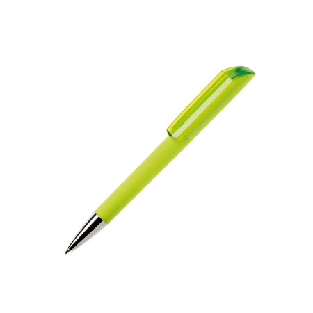 Maxema balpen FLOW F1 GOM 30 CR, draaibalpen met gekleurde houder voorzien van rubber coating, glanzende gekleurde transparante clip, mat gekleurd kunststof bovenstuk met opvallend motief, verchroomd puntstuk. Voorzien van Jumbo vulling met blauwe Dokumental inkt voor tot 2.500 meter schrijfplezier. Houder, bovenstuk en clip zijn leverbaar in maar liefst 18 kleuren welke vanaf 2.000 stuks onderling qua kleur gecombineerd kunnen worden.