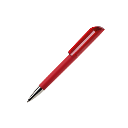 Maxema balpen FLOW F1 GOM 30 CR, draaibalpen met gekleurde houder voorzien van rubber coating, glanzende gekleurde transparante clip, mat gekleurd kunststof bovenstuk met opvallend motief, verchroomd puntstuk. Voorzien van Jumbo vulling met blauwe Dokumental inkt voor tot 2.500 meter schrijfplezier. Houder, bovenstuk en clip zijn leverbaar in maar liefst 18 kleuren welke vanaf 2.000 stuks onderling qua kleur gecombineerd kunnen worden.