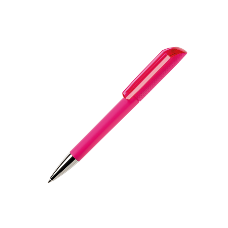 Maxema balpen FLOW F1 GOM 30 CR, draaibalpen met gekleurde houder voorzien van rubber coating, glanzende gekleurde transparante clip, mat gekleurd kunststof bovenstuk met opvallend motief, verchroomd puntstuk. Voorzien van Jumbo vulling met blauwe Dokumental inkt voor tot 2.500 meter schrijfplezier. Houder, bovenstuk en clip zijn leverbaar in maar liefst 18 kleuren welke vanaf 2.000 stuks onderling qua kleur gecombineerd kunnen worden.