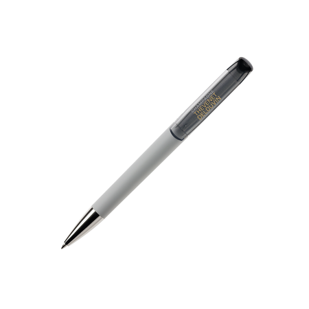 Maxema balpen FLOW F1 GOM 30 CR, draaibalpen met gekleurde houder voorzien van rubber coating, glanzende gekleurde transparante clip, mat gekleurd kunststof bovenstuk met opvallend motief, verchroomd puntstuk. Voorzien van Jumbo vulling met blauwe Dokumental inkt voor tot 2.500 meter schrijfplezier. Houder, bovenstuk en clip zijn leverbaar in maar liefst 18 kleuren welke vanaf 2.000 stuks onderling qua kleur gecombineerd kunnen worden.