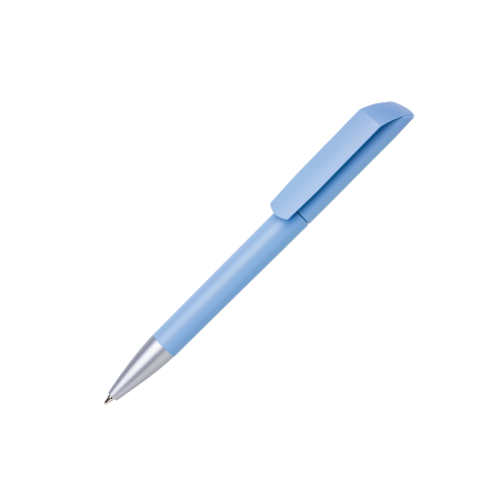 Maxema balpen FLOW F1 MATT AL, draaibalpen met matte gekleurde houder, bovenstuk en clip, aluminiumkleurig puntstuk. Voorzien van Jumbo vulling met blauwe Dokumental inkt voor tot 2.500 meter schrijfplezier. Houder, bovenstuk en clip zijn leverbaar in maar liefst 22 kleuren welke vanaf 2.000 stuks onderling qua kleur gecombineerd kunnen worden.