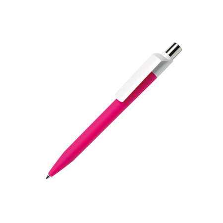 Maxema balpen DOT D1 GOM CB CR met gekleurde houder voorzien van rubbercoating, glanzend witte clip, glanzend gekleurd element in de verchroomde drukker. Voorzien van Jumbo vulling met blauwe Dokumental inkt voor tot 2.500 meter schrijfplezier. Houders, clips en element in drukker leverbaar in maar liefst 21 kleuren die vanaf 2.000 stuks per onderdeel onderling te combineren zijn