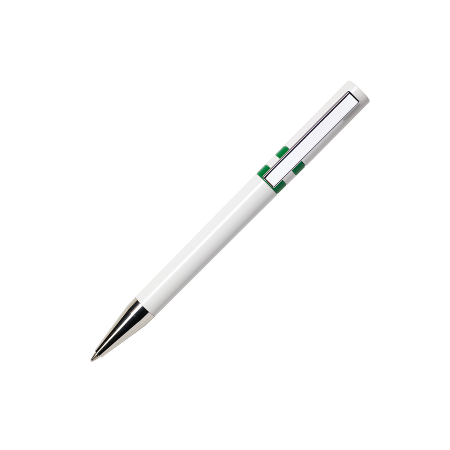 Maxema balpen ETHIC ET900 B, draaibalpen met glanzend witte houder en bovenstuk, glanzende gekleurde ringen en element in de top van het bovenstuk, verchroomde clip en puntstuk. Voorzien van Jumbo vulling met blauwe Dokumental inkt voor tot 2.500 meter schrijfplezier. De onderdelen van de pen zijn leverbaar in maar liefst 9 kleuren en zijn vanaf 2.000 stuks onderling qua kleur te combineren.