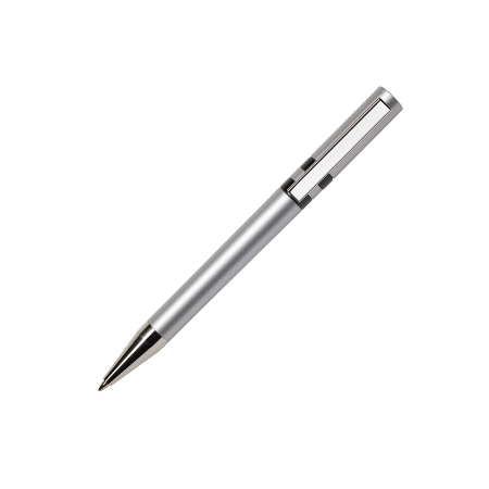 Maxema balpen ETHIC ET900 AL, draaibalpen met aluminium kleurige houder, bovenstuk en middelste ring, 2 glanzend gekleurde ringen en element in de top van het bovenstuk, verchroomde clip en puntstuk. Voorzien van Jumbo vulling met blauwe Dokumental inkt voor tot 2.500 meter schrijfplezier. De onderdelen van de pen zijn leverbaar in diverse kleuren en zijn vanaf 2.000 stuks onderling qua kleur te combineren.