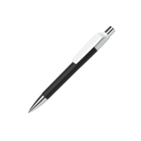 Maxema balpen MOOD MD1 GOM CB M1 met gekleurde houder voorzien van rubber coating, glanzende witte clip, verchroomd metalen puntstuk en drukker. Voorzien van Parker vulling met blauwe Dokumental inkt voor tot 4.000 meter schrijfplezier. Houders en clips leverbaar in maar liefst 21 kleuren die per onderdeel vanaf 2.000 onderling te combineren zijn
