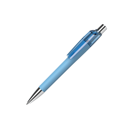 Maxema balpen MOOD MD1 GOM 30 M1 met gekleurde houder voorzien van rubber coating, glanzende gekleurde transparante clip, verchroomd metalen puntstuk en drukker. Voorzien van Parker vulling met blauwe Dokumental inkt voor tot 4.000 meter schrijfplezier. Houders en clips leverbaar in maar liefst 18 kleuren die per onderdeel vanaf 2.000 onderling te combineren zijn