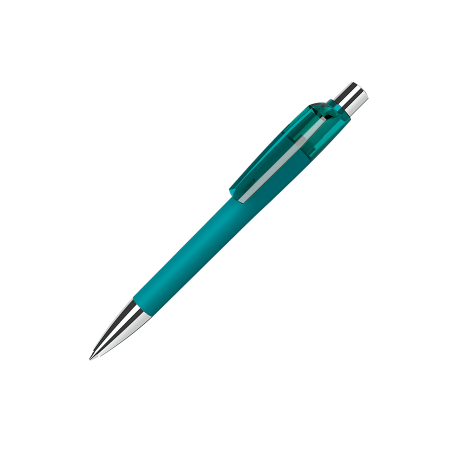 Maxema balpen MOOD MD1 GOM 30 M1 met gekleurde houder voorzien van rubber coating, glanzende gekleurde transparante clip, verchroomd metalen puntstuk en drukker. Voorzien van Parker vulling met blauwe Dokumental inkt voor tot 4.000 meter schrijfplezier. Houders en clips leverbaar in maar liefst 18 kleuren die per onderdeel vanaf 2.000 onderling te combineren zijn
