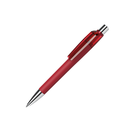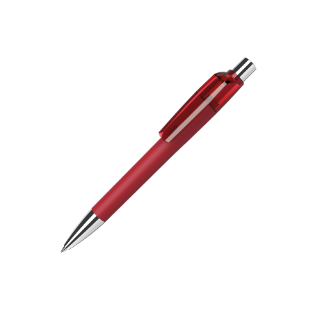 Maxema balpen MOOD MD1 GOM 30 M1 met gekleurde houder voorzien van rubber coating, glanzende gekleurde transparante clip, verchroomd metalen puntstuk en drukker. Voorzien van Parker vulling met blauwe Dokumental inkt voor tot 4.000 meter schrijfplezier. Houders en clips leverbaar in maar liefst 18 kleuren die per onderdeel vanaf 2.000 onderling te combineren zijn