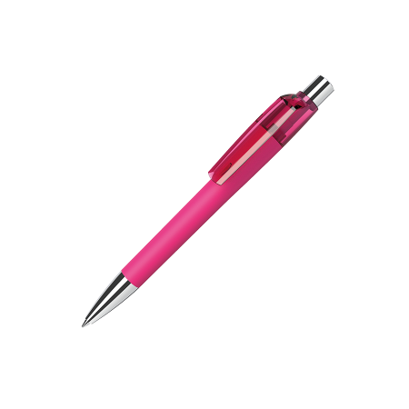 Maxema balpen MOOD MD1 GOM 30 M1 met gekleurde houder voorzien van rubber coating, glanzende gekleurde transparante clip, verchroomd metalen puntstuk en drukker. Voorzien van Parker vulling met blauwe Dokumental inkt voor tot 4.000 meter schrijfplezier. Houders en clips leverbaar in maar liefst 18 kleuren die per onderdeel vanaf 2.000 onderling te combineren zijn
