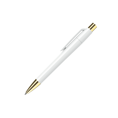 Maxema balpen MOOD MD1 C M2 met glanzende gekleurde houder en clip, goudkleurig metalen puntstuk en drukker. Voorzien van Parker vulling met blauwe Dokumental inkt voor tot 4.000 meter schrijfplezier. Houders en clips leverbaar in 2 kleuren die per onderdeel vanaf 2.000 onderling te combineren zijn