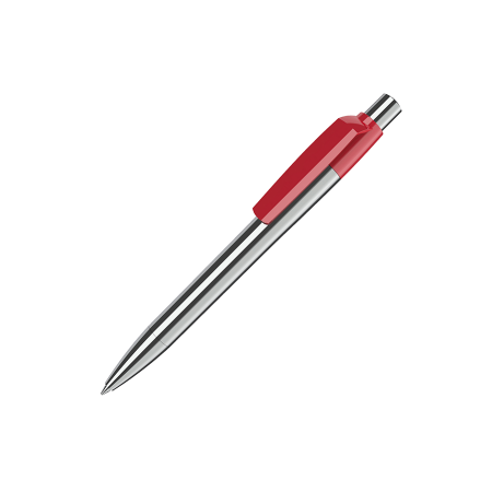Maxema balpen MOOD METAL MD1 M M1 met metalen chroomkleurige houder, puntstuk en drukker, met glanzende gekleurde clip. Voorzien van Parker vulling met blauwe Dokumental inkt voor tot 4.000 meter schrijfplezier. Clips leverbaar in maar liefsts 23 kleuren.