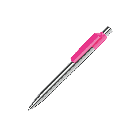 Maxema balpen MOOD METAL MD1 M M1 met metalen chroomkleurige houder, puntstuk en drukker, met glanzende gekleurde clip. Voorzien van Parker vulling met blauwe Dokumental inkt voor tot 4.000 meter schrijfplezier. Clips leverbaar in maar liefsts 23 kleuren.