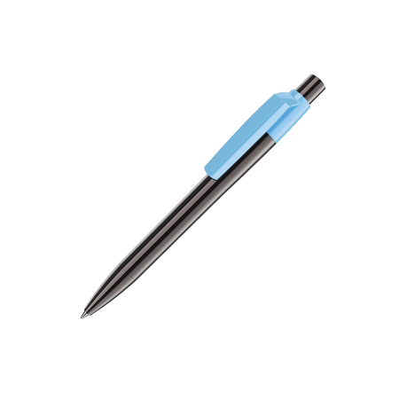 Maxema balpen MOOD METAL MD1 M M4 met metalen titaniumkleurige houder, puntstuk en drukker, met glanzende gekleurde clip. Voorzien van Parker vulling met blauwe Dokumental inkt voor tot 4.000 meter schrijfplezier. Clips leverbaar in maar liefsts 18 kleuren.