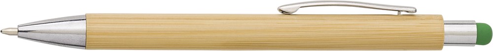 Bamboe balpen met kunststof punt en top, inclusief rubberen punt voor capacitieve schermen. De...meer