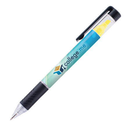 De DELOS balpen is een multifunctioneel item dat een balpen combineert met een textmarker in de kleur blauw, geel, groen of roze. De pen heeft een zwarte grip en drukker en kan full colour en 360° bedrukt worden via digitaaldruk/folietransferdruk.
