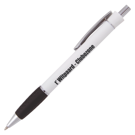 MIKKON met een metalen clip Peekay. Witte houder en gekleurde grip verkrijgbaar in de kleuren blauw, rood en zwart. Voorzien van blauw schrijvende X-20 vulling.