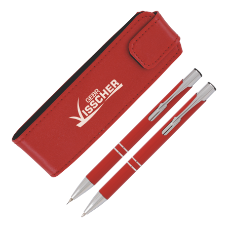 ARUBA kunstlederen map met 1 pen en 1 vulpotlood Peekay, prachtige promoset, leverbaar in verschillende kleuren, de pen is blauwschrijvend