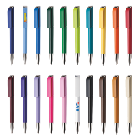 Maxema balpen TAG TA1 C CR, draaibalpen met glanzend gekleurde houder en clip, verchroomd puntstuk en element boven de clip. Voorzien van Jumbo vulling met blauwe Dokumental inkt voor tot 2.500 meter schrijfplezier. Boven- en onderstuk zijn leverbaar in maar liefst 20 kleuren en zijn vanaf 2.000 stuks onderling qua kleur te combineren.