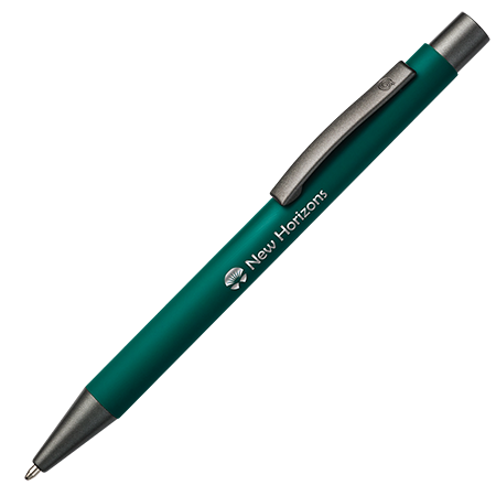 De BARBADOS soft touch balpen combineert een aangename grip met een luxe uitstraling door de speciale 'spiegel'-gravering en wordt geleverd met een blauwe vulling.