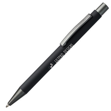 De BARBADOS soft touch balpen combineert een aangename grip met een luxe uitstraling door de speciale 'spiegel'-gravering en wordt geleverd met een blauwe vulling.