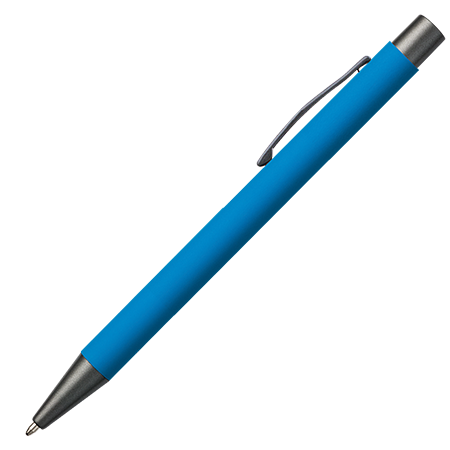 De JAMAICA metalen balpen heeft een stijlvolle rubber finish en is voorzien van antracietkleurige details (drukker, clip en punt). De pen is te personaliseren met lasergravering en is blauwschrijvend.