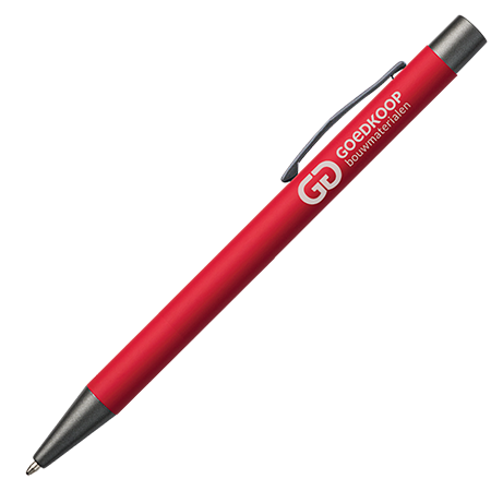 De JAMAICA metalen balpen heeft een stijlvolle rubber finish en is voorzien van antracietkleurige details (drukker, clip en punt). De pen is te personaliseren met lasergravering en is blauwschrijvend.