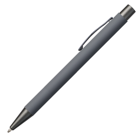 De JAMAICA metalen balpen heeft een stijlvolle rubber finish en is voorzien van antracietkleurige details (drukker, clip en punt). De pen is te personaliseren met lasergravering en is blauwschrijvend.