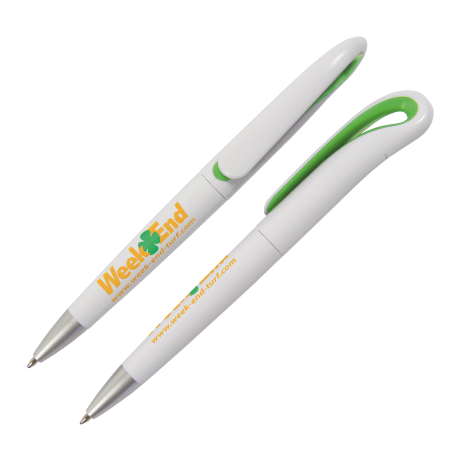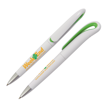 De VICTORIA kunststof balpen Peekay heeft een stijlvolle, gestileerde clip, leverbaar in diverse kleuren. Premo biedt de mogelijkheid om deze pen volledig in RONDZEEFDRUK te personaliseren. De pen wordt geleverd met een blauw schrijvende Parker systeem langschrijfvulling.