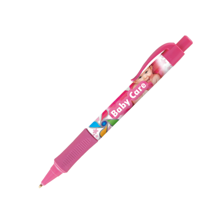 De KEA balpen is een opvallende pen met een gekleurde gripzone en beslag, die volledig (all over) bedrukt kan worden in full colour via 360° digitaaldruk/folietransferdruk.