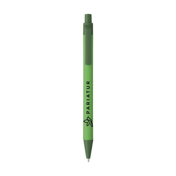 Blauwschrijvende balpen met houder van gerecycled papier. De clip, drukknop en het puntstuk zijn van biologisch afbreekbaar PLA.