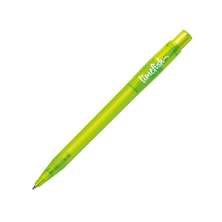 Maxema balpen PIXEL PX40 FROST met frosted gekleurde houder, glanzend gekleurde transparante clip en drukker. Voorzien van X-20 vulling met blauwe Dokumental inkt voor tot 2.000 meter schrijfplezier. Leverbaar in maar liefst 18 kleuren en vanaf 2.000 stuks qua kleur te combineren