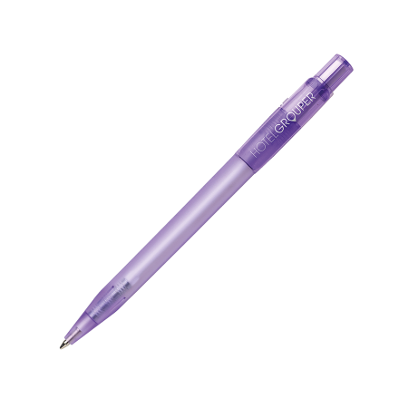 Maxema balpen PIXEL PX40 FROST met frosted gekleurde houder, glanzend gekleurde transparante clip en drukker. Voorzien van X-20 vulling met blauwe Dokumental inkt voor tot 2.000 meter schrijfplezier. Leverbaar in maar liefst 18 kleuren en vanaf 2.000 stuks qua kleur te combineren