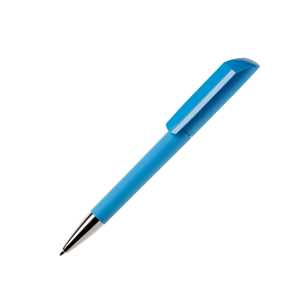 Maxema balpen FLOW F1 GOM C CR, draaibalpen met gekleurde houder voorzien van rubber coating, glanzende gekleurde clip, mat gekleurd kunststof bovenstuk met opvallend motief, verchroomd puntstuk. Voorzien van Jumbo vulling met blauwe Dokumental inkt voor tot 2.500 meter schrijfplezier. Houder, bovenstuk en clip zijn leverbaar in maar liefst 22 kleuren welke vanaf 2.000 stuks onderling qua kleur gecombineerd kunnen worden.
