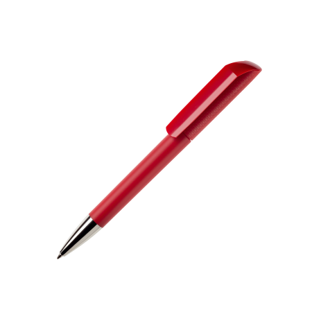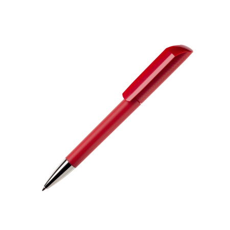 Maxema balpen FLOW F1 GOM C CR, draaibalpen met gekleurde houder voorzien van rubber coating, glanzende gekleurde clip, mat gekleurd kunststof bovenstuk met opvallend motief, verchroomd puntstuk. Voorzien van Jumbo vulling met blauwe Dokumental inkt voor tot 2.500 meter schrijfplezier. Houder, bovenstuk en clip zijn leverbaar in maar liefst 22 kleuren welke vanaf 2.000 stuks onderling qua kleur gecombineerd kunnen worden.