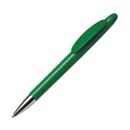 Maxema balpen ICON IC400 C CR, draaibalpen met glanzende gekleurde houder en clip, verchroomd puntstuk. Voorzien van Jumbo vulling met blauwe Dokumental inkt voor tot 2.500 meter schrijfplezier. Boven- en onderstuk van de pen zijn leverbaar in maar liefst 20 kleuren en zijn vanaf 2.000 stuks onderling qua kleur te combineren.