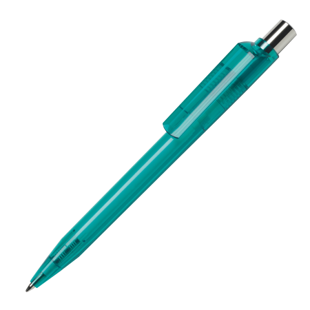 Maxema balpen DOT D1 30 CR, glanzend gekleurde transparante houder en clip, glanzend gekleurd element in de verchroomde drukker. Voorzien van Jumbo vulling met blauwe Dokumental inkt voor tot 2.500 meter schrijfplezier. Houders, clips en element in drukker leverbaar in maar liefst 14 kleuren die per onderdeel vanaf 2.000 stuks onderling te combineren zijn