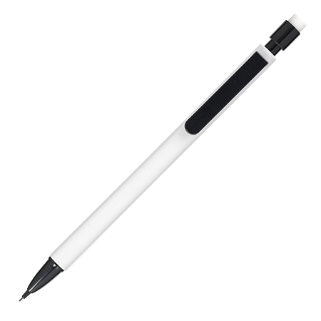 GAZ vulpotlood Peekay. Kunststof vulpotlood met kunststof clip en wit gummetje bovenop de drukker. Voorzien van 2 HB-vullingen 0,7 mm.