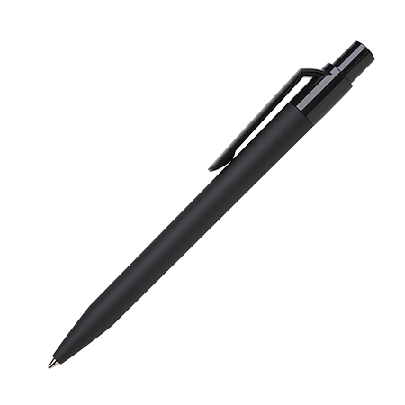 Maxema balpen DOT D1 GOM K met zwarte houder voorzien van rubbercoating, glanzend zwarte clip, glanzend gekleurd element in de glanzend zwarte drukker. Voorzien van Jumbo vulling met blauwe Dokumental inkt voor tot 2.500 meter schrijfplezier. Houders, clips en element in drukker leverbaar in maar liefst 22 kleuren die vanaf 2.000 stuks per onderdeel onderling te combineren zijn