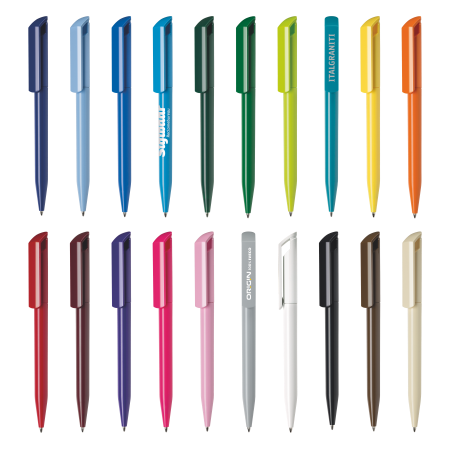 Maxema balpen ZINK Z1 C, draaibalpen met glanzend gekleurde houder en bovenstuk. Voorzien van Jumbo vulling met blauwe Dokumental inkt voor tot 2.500 meter schrijfplezier. Boven- en onderstuk leverbaar in maar liefst 20 kleuren die vanaf 2.000 stuks onderling qua kleur te combineren zijn.
